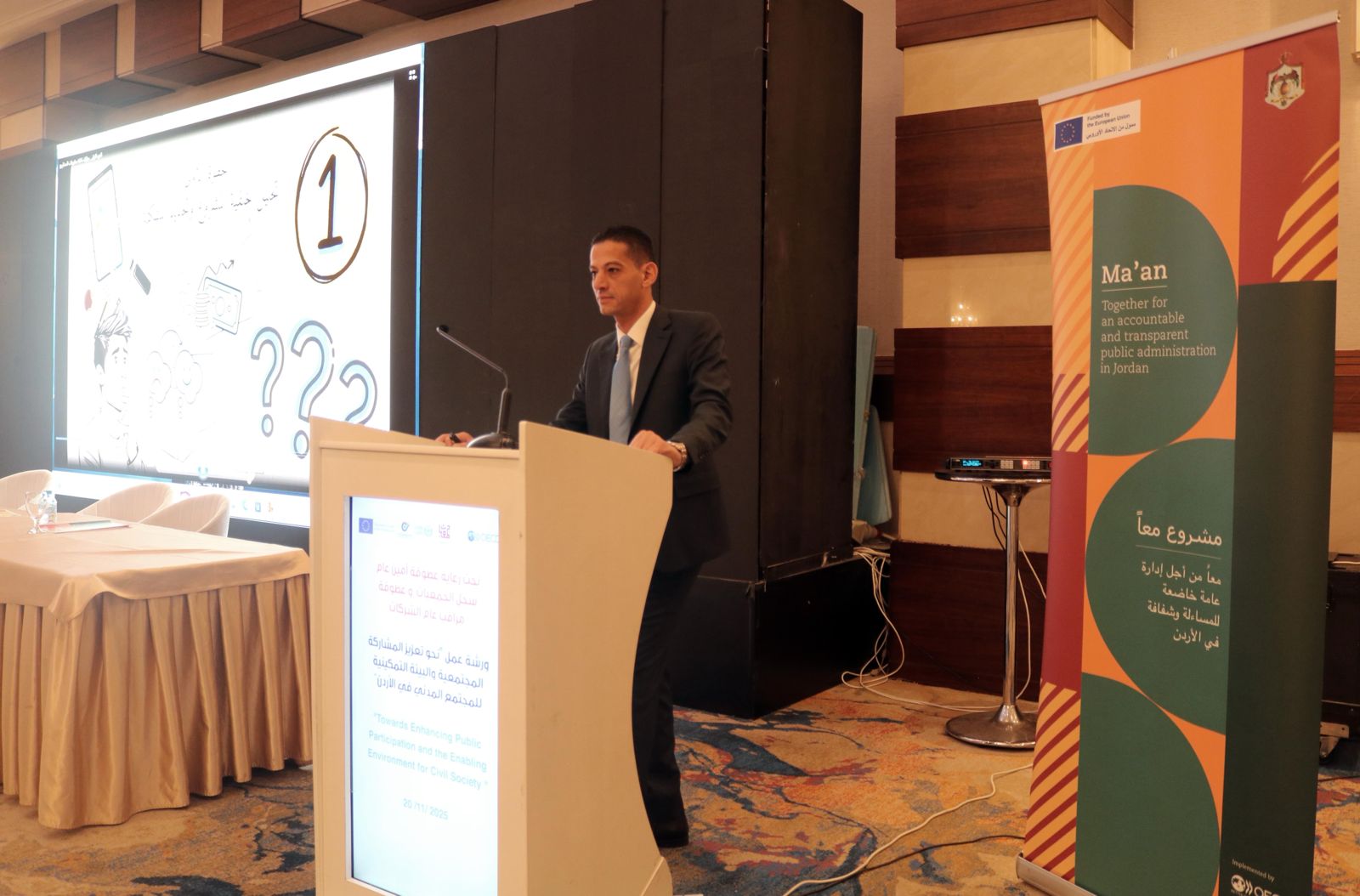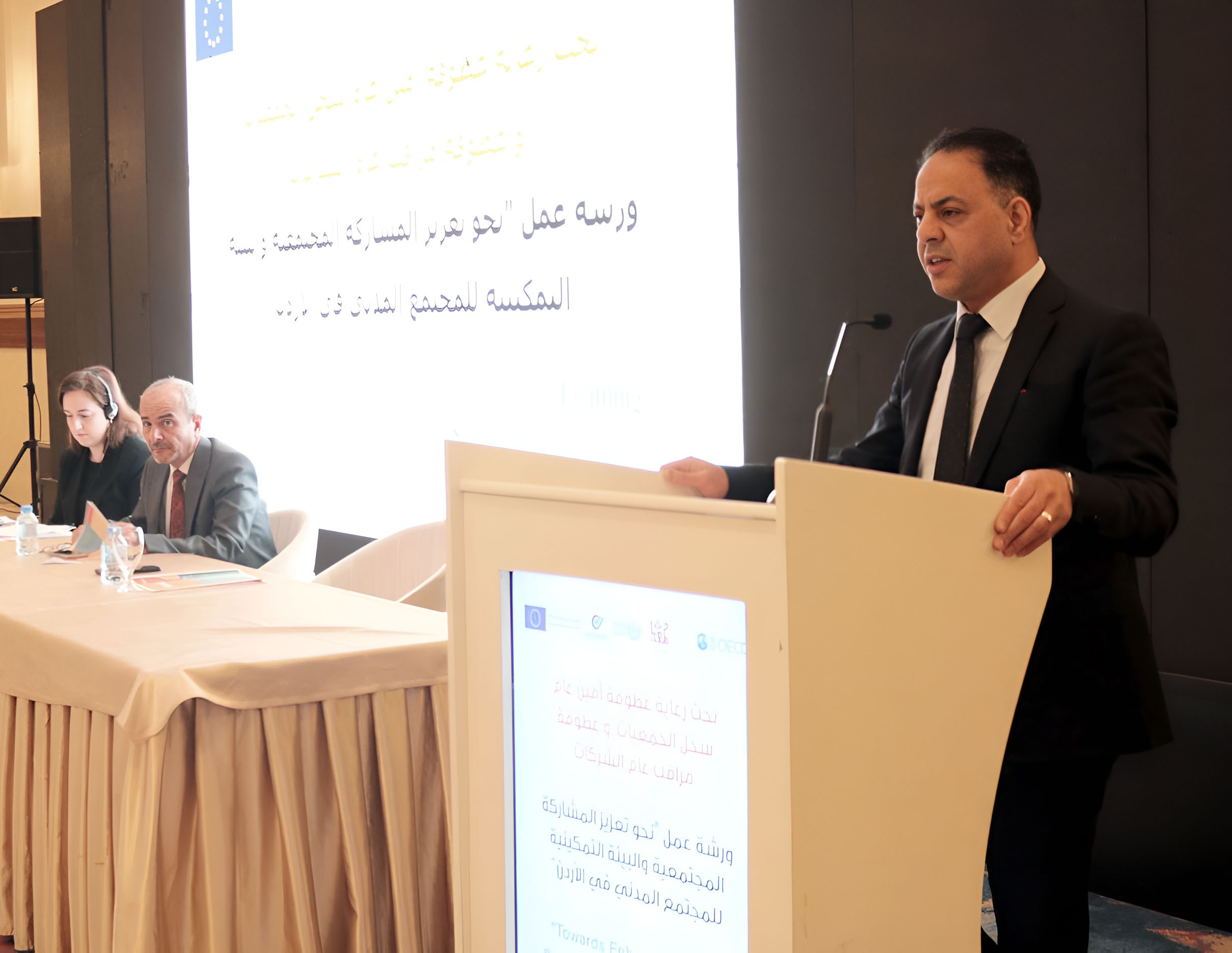 حيث نظمت هذه الورشة بالشراكة مع منظمة التعاون الاقتصادي والتنمية OECD وبالتعاون مع مشروع "معا من أجل إدارة عامة خاضعة للمساءلة وشفافة في الأردن"، وقد تم استعراض الانشطة والإنجازات التي قامت بها الجهات الحكومية ذات العلاقة بالتعاون مع منظمة OECD لدعم البيئة المواتية لمنظمات المجتمع المدني بالإضافة إلى تعزيز المشاركة العامة في الأردن.