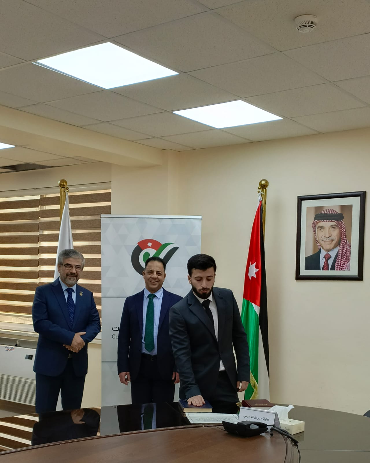 أدى مجموعة من المحاسبين القانونيين القسم القانوني أمام عطوفة مراقب عام الشركات الدكتور وائل العرموطي، مندوباً عن رئيس الهيئة العليا لمهنة المحاسبة القانونية معالي وزير الصناعة والتجارة والتموين، وذلك بحضور رئيس جمعية المحاسبين القانونيين الأردنيين الأستاذ حسام توفيق رحال، اليوم الثلاثاء الموافق 23 كانون الأول 2025، وذلك بعد اجتيازهم امتحان مزاولة المهنة واستكمالهم لمتطلبات الترخيص.