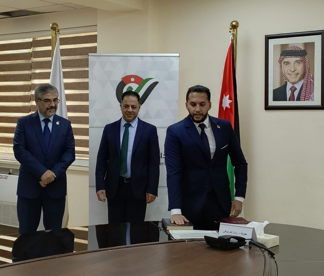 أدى مجموعة من المحاسبين القانونيين القسم القانوني أمام عطوفة مراقب عام الشركات الدكتور وائل العرموطي، مندوباً عن رئيس الهيئة العليا لمهنة المحاسبة القانونية معالي وزير الصناعة والتجارة والتموين، وذلك بحضور رئيس جمعية المحاسبين القانونيين الأردنيين الأستاذ حسام توفيق رحال، اليوم الثلاثاء الموافق 23 كانون الأول 2025، وذلك بعد اجتيازهم امتحان مزاولة المهنة واستكمالهم لمتطلبات الترخيص.